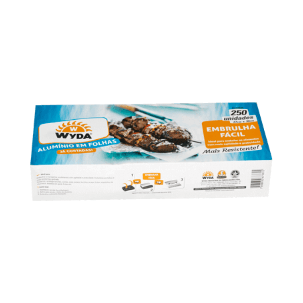 Embrulha Fácil são Folhas de Alumínio já cortadas, prontas para o uso. Cada folha de Alumínio do Embrulha Fácil, contém 27cm x 30cm, com 250 unidades de folhas por embalagem.