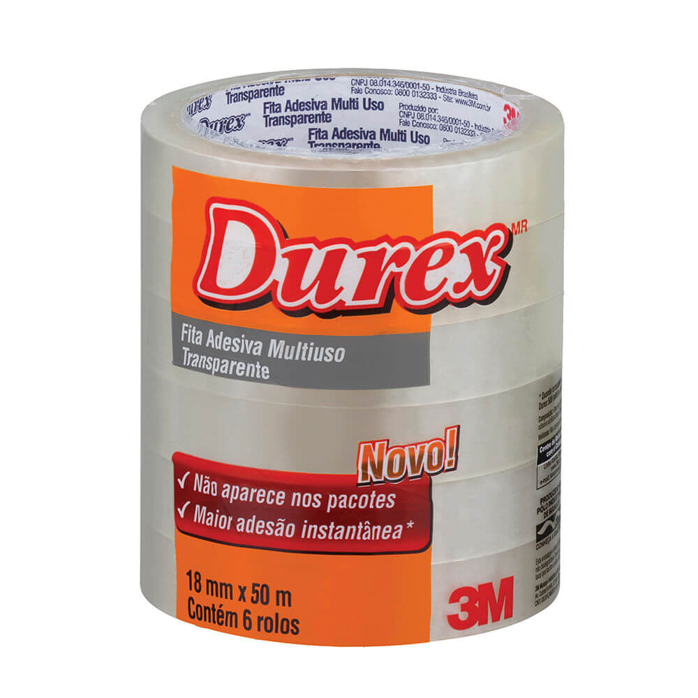 A Fita Adesiva Transparente Durex® da 3M, possui mais resistência e adesão instantânea. Auxilia no fechamento de caixas, embalagens e também pode ser utilizada como reforço. Confeccionada em filme polipropileno biorientado, filme 10% mais grosso comparado a outras marcas. Por ser transparente, ela garante um acabamento discreto e permite o concerto e emendas de pacotes e sacos plásticos. Indicada para a colagem em superfícies plásticas ou até mesmo colagem de cartazes.