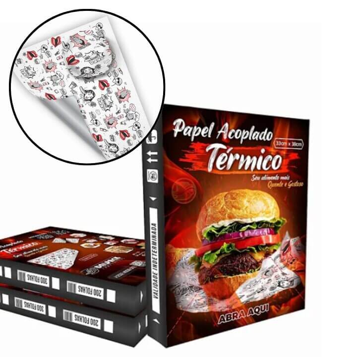 O Papel Acoplado Térmico Metalizado 33×38 cm é ideal para embalar alimentos quentes ou frios com qualidade, segurança e excelente apresentação. Sua camada metalizada ajuda a manter a temperatura dos alimentos por mais tempo, conservando o sabor e a textura. É amplamente utilizado em hamburguerias, lanchonetes, padarias, confeitarias e restaurantes para embrulhar hambúrgueres, lanches, sanduíches, porções e salgados.