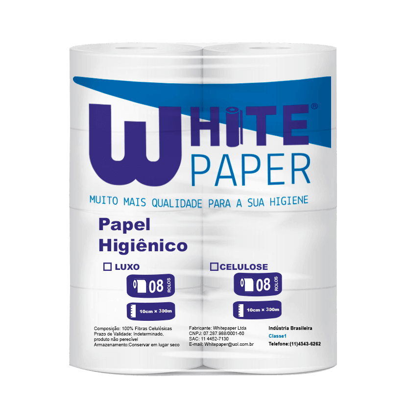 PAPEL HIGIÊNICO ROLÃO CELULOSE WHITE PAPER C/8